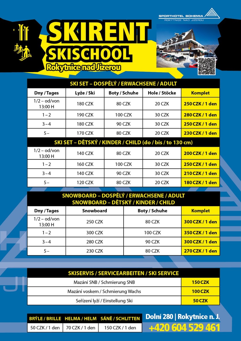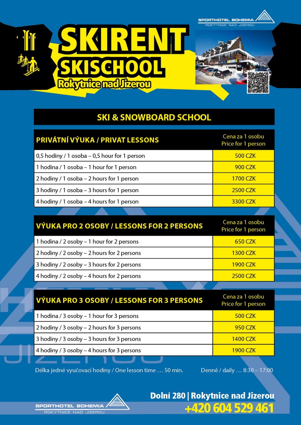 Skischule für Sie oder für Ihre Kinder, können Sie an der Rezeption vereinbaren. Der Unterricht findet an den Liften, die innerhalb von etwa 20 m befinden. Warten Sie professionell ausgebildete Gruppe von jungen Menschen, die Ihnen helfen die richtige Ausrüstung wählen, erfahren Sie sicher und richtigen Techniken des Skifahrens und Snowboardens, so dass Sie ein Spaß.
